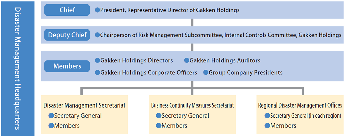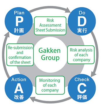 Gakken Group has developed the Gakken Group Basic Rules for Risk Management as an extension of the Group's internal risk management regulations and the foundational policy guiding organizational integrity. Furthermore, the Gakken Group Risk Management Manual has been established to effectively address the diverse array of risks inherent in the Group's operational sphere.To oversee risk management comprehensively, the Risk Management Subcommittee operates under the purview of the Internal Controls Committee. This body convenes biannually to provide reports to the directors. Collaboration with directors responsible for GRC (Governance, Risk Management, and Compliance) and those assigned to risk management roles within each Group company forms an integral part of the Risk Management Subcommittee's functions.