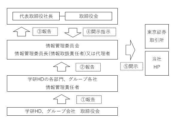 当社は、重要な会社情報を適切に管理しインサイダー取引の未然防止を図ること及び公平な情報開示を行うことを目的として、「学研グループ・インサイダー取引防止規程」を定め、グループ社員全体への周知徹底と理解啓蒙を促進しています。
