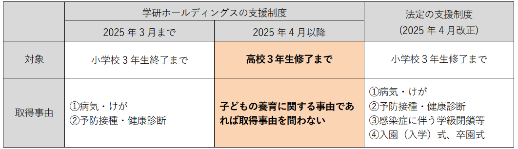 株式会社学研ホールディングスの育児・介護に関する法定以上の独自支援制度