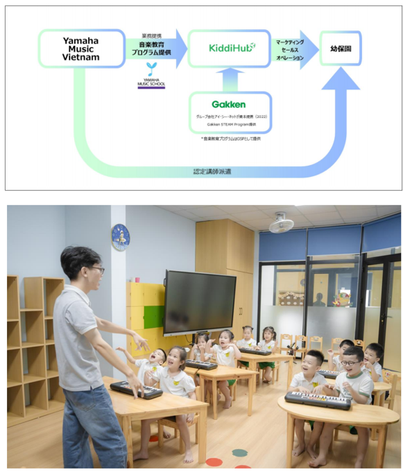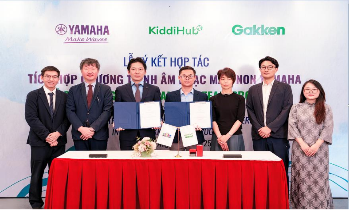 株式会社 学研ホールディングス(東京・品川/代表取締役社長:宮原博昭)のグループ会社である、アイ・シー・ネット株式会社(以下、アイ・シー・ネット)は、学研のグローバル戦略を推進しています。また、ベトナム最大級の園・習い事口コミサイト/教育情報サイトを運営するKIDDI HUBEDUCATION TECHNOLOGY JOINT STOCK COMPANY(以下、KiddiHub)と連携し、2023年1月より幼児向けSTEAM 教育プログラム「Gakken STEAM Program(以下、GSP)」を展開しています。この度、KiddiHubと Yamaha Music Vietnam Company Limited(以下、YMVN)が、ベトナムの幼児向け音楽教育の展開を開始するために2025年7月28日に業務提携を締結しました。