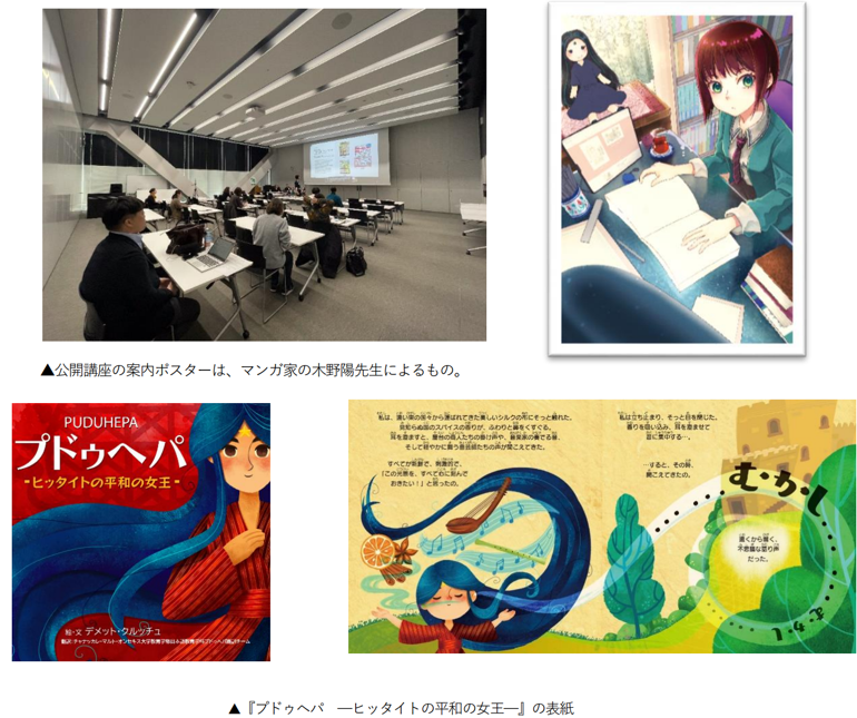 トルコのチャナッカレ・オンセキズ・マルト大学教育学部日本語教育学科長トルガ・オズシェン教授と、8人の日本語教育学科の学生らが翻訳に参加し、筑波大学研究グループと学研編集者が共同で日本語版を完成。現在は在日トルコ大使館などに提供され、教育・外交の現場で注目を集めています。日本国内でも各種展示会や研究発表の会で、本合同研究の一環として、『プドゥヘパ ―ヒッタイトの平和の女王―』の斬新な取り組みを紹介していく予定です。