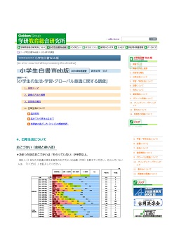 学研教育総合研究所は、全国の小学校1年生から6年生までの児童、男子・女子総勢1200名を対象にアンケート調査を行い、その結果を小学生白書Web版「小学生の生活・学習・グローバル意識に関する調査」(2016年9月調査) として公開しました。 【2016年9月 調査項目】 (1)生活に関わる項目 (2)学習に関わる項目 (3)グローバル意識に関わる項目