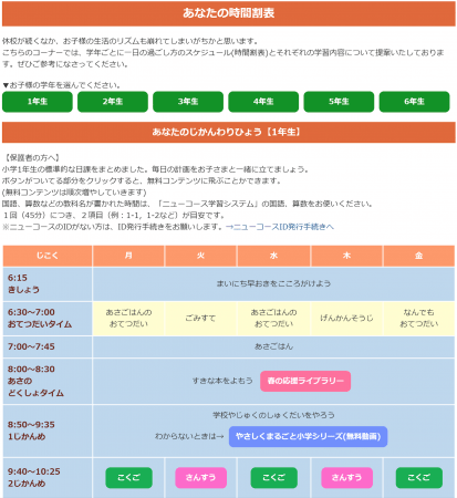 「あなたのじかんわりひょう」は、そのようなご家庭のお悩みに対して、学研独自の時間割表をお届けし、休校明けの学校生活に、円滑に順応ができるようサポートいたします