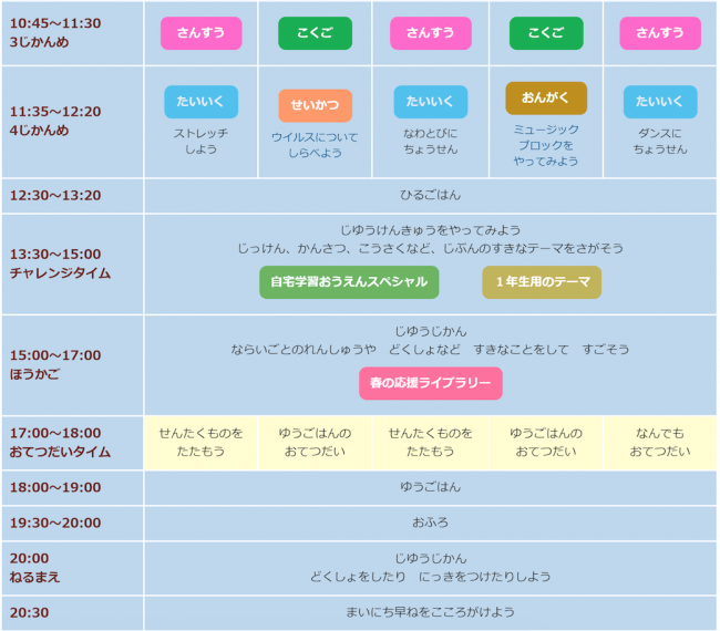 新型コロナウイルス感染症の影響による「学校休校」や「イベント自粛」等で、多くのお子様は自宅待機を余儀なくされています。そのような環境下、お子様の生活ペースが乱れてしまい、家庭内だけでの対策に苦慮しているご家庭もあるかと思います。