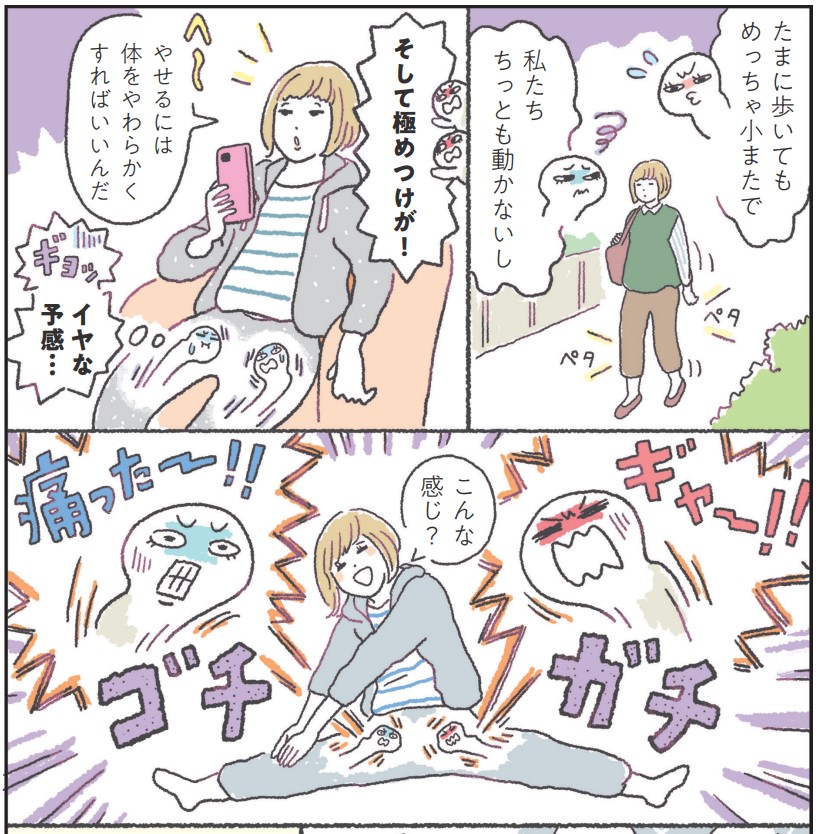 日常の動きで股関節をしっかり使えている人は少なく、mieyいわく「何をしても脚やおなかがやせにくい人は、100%といっていいほど股関節がガチガチ」なのだそう。