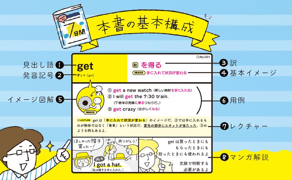 全編マンガで、忘れてしまった「英語のルール」を基礎からもう一度学び直すことができる本として絶大な支持を集めたベストセラー書の『マンガでカンタン!中学英語は7日間でやり直せる。』と同シリーズの英単語版にあたるのが、本書『図解でカンタン!中学英単語は7日間でやり直せる。』です。