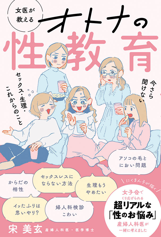 著者は、宋 美玄(ソン ミヒョン)先生。TV番組のコメンテーターなどとして、ストレートな発言で人気の産婦人科の先生ですが、大ベストセラー『女医が教える 本当に気持ちのいいセックス』シリーズの著者として、ご記憶の方も多いでしょう。それは、おもに男性向けの性教育本でしたが、今回は完全に“女子視点”。個性豊かな5人の女子が集まる女子会に先生が参加する体で、性にまつわる赤裸々な悩みや疑問に、産婦人科医として、現役オトナ女子として回答していきます。