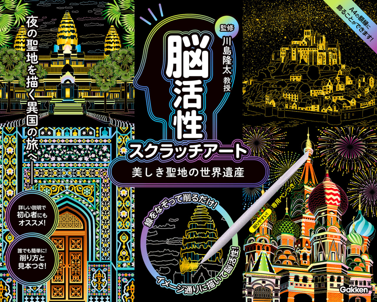 株式会社 学研ホールディングス(東京・品川/代表取締役社長:宮原博昭)のグループ会社、株式会社 学研プラス(東京・品川/代表取締役社長兼COO:南条達也)は、150万部を突破した人気のスクラッチアートの新シリーズ「脳活性スクラッチアート」第三弾の『美しき聖地の世界遺産』を2022年5月26日(木)に発売いたしました。
