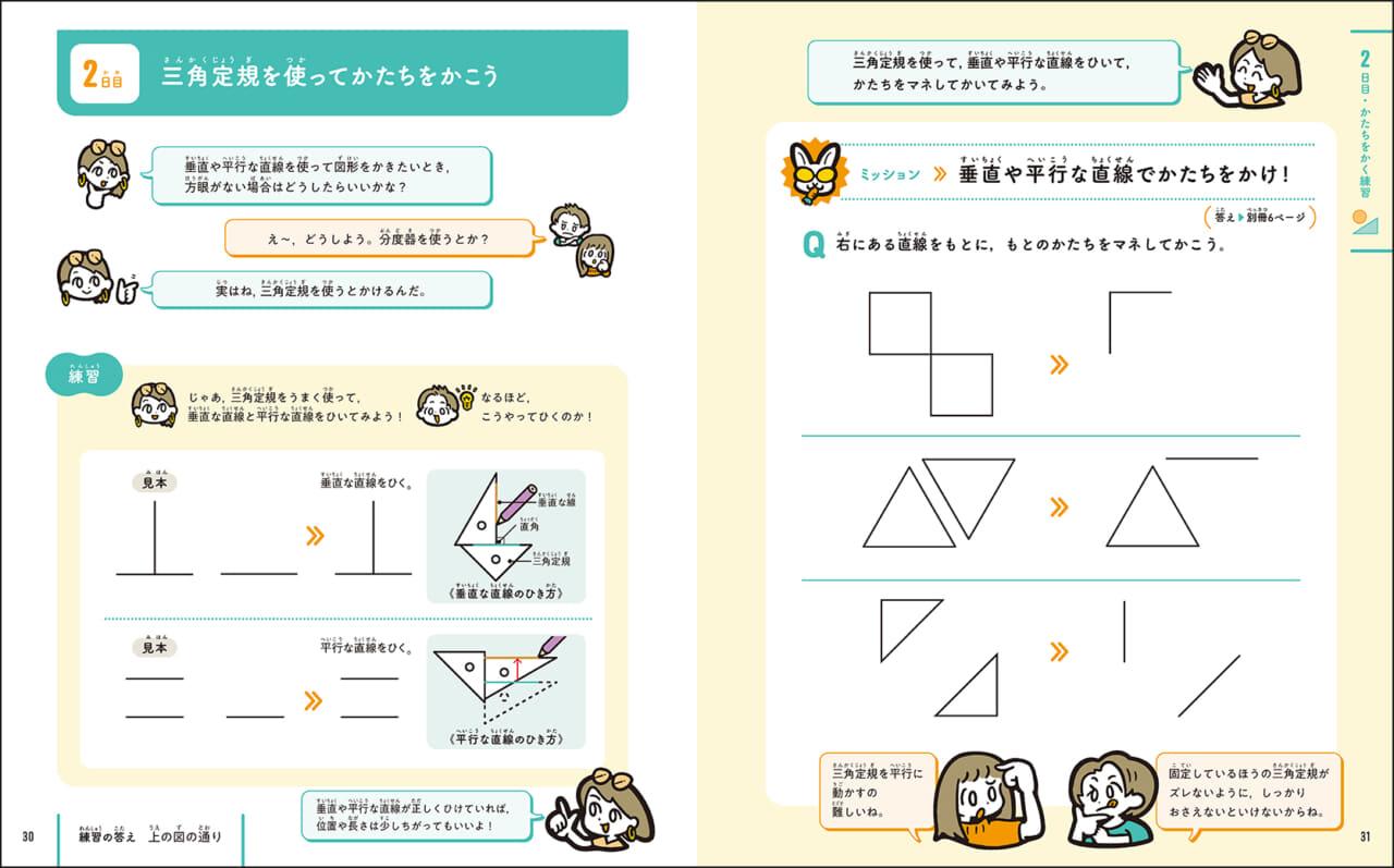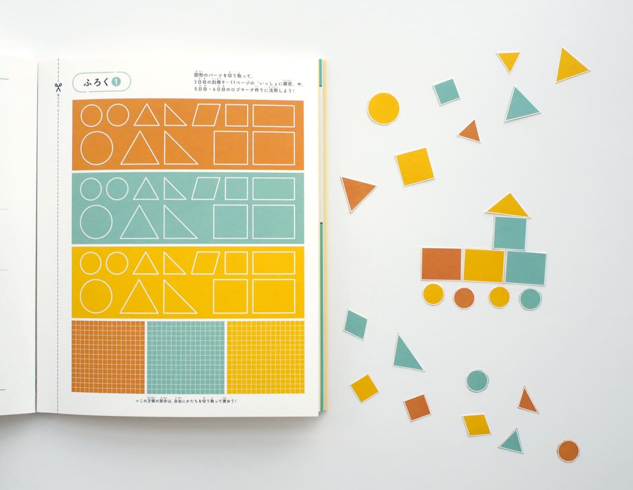 また『デザイン×図形』には、実際に切り取って使用できる図形のパーツが付いており、手を動かしながら飽きずに取り組むことができます。