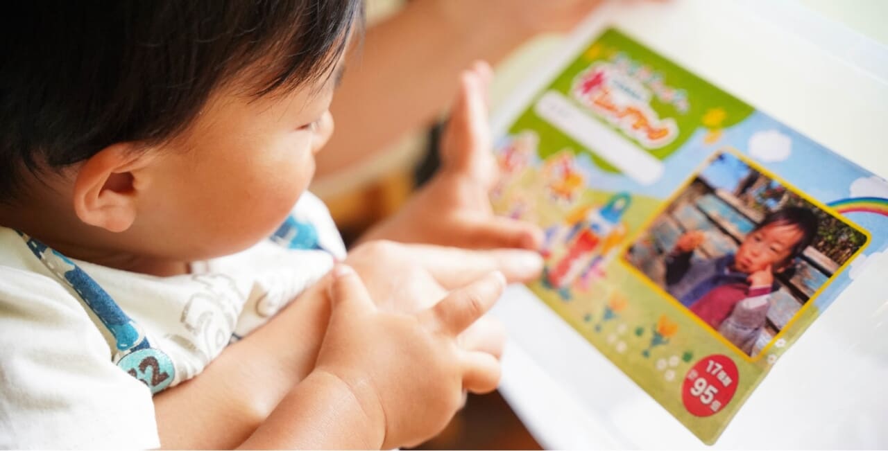 お子さんが写ったお気に入りの写真をつかって、スマホやPCから簡単にオリジナルのラベルがつくれます。