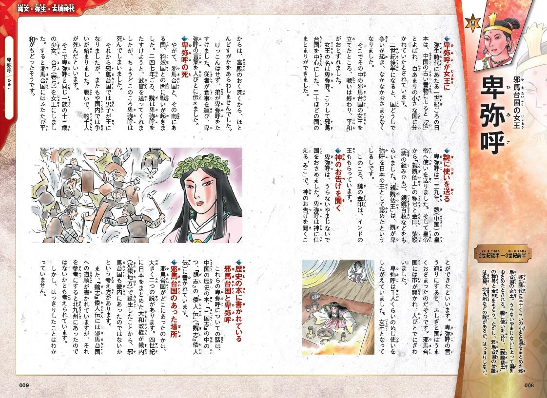 小学校の学習指導要領で指定されている42人を中心に、小学校・中学校の教科書に出てくる重要人物を網羅。古代から現代まで300人以上を、活躍した時代ごとにわかりやすく分類して掲載しています。各時代ごとに覚えておきたい戦いや事件などもコラムで楽しく紹介。人物と出来事を紐づけることで、より記憶に残りやすくしています。
