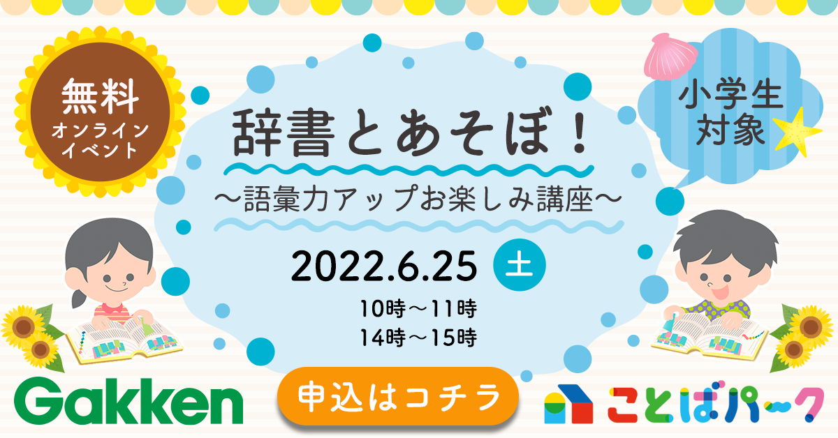 株式会社 学研ホールディングス(東京・品川/代表取締役社長:宮原博昭)のグループ会社、株式会社 学研エデュケーショナル(東京・品川/代表取締役社長:川端篤)は、6月25日(土)、8月20日(土)より、ことばパーク夏イベント第1弾として親子でご参加いただける特別オンラインイベントを開催します。