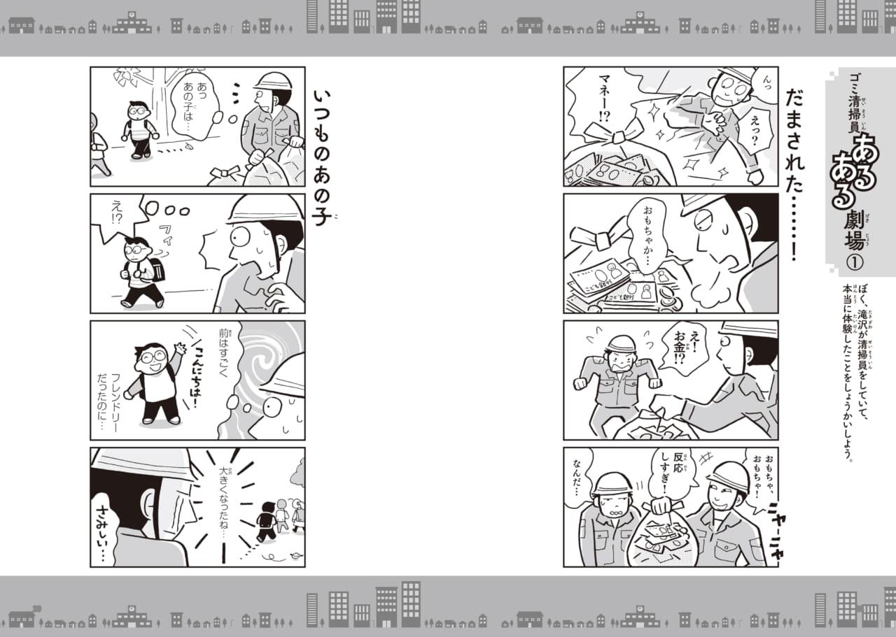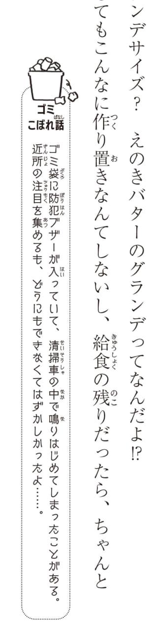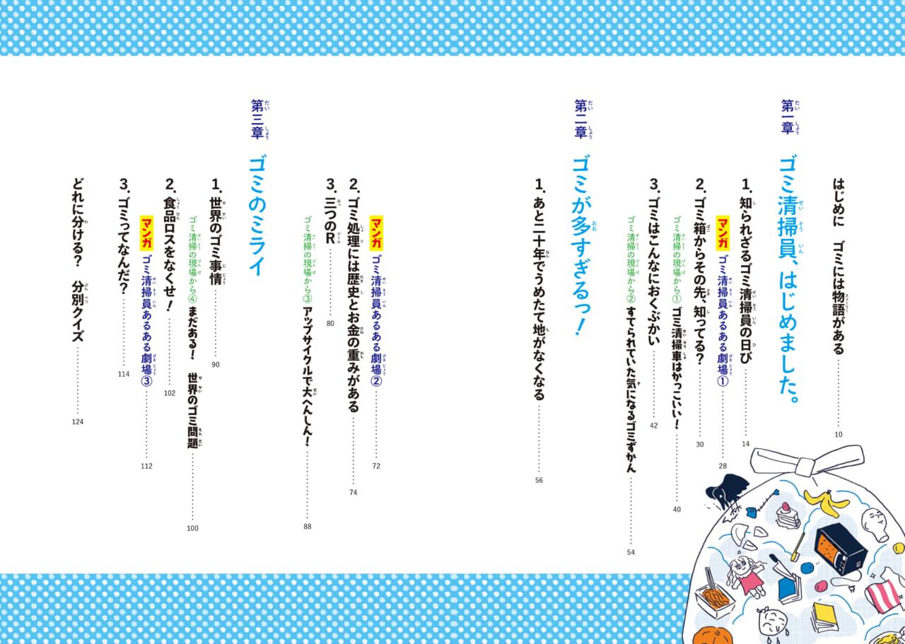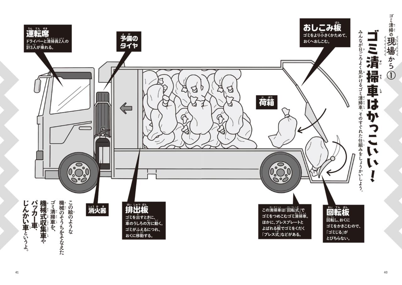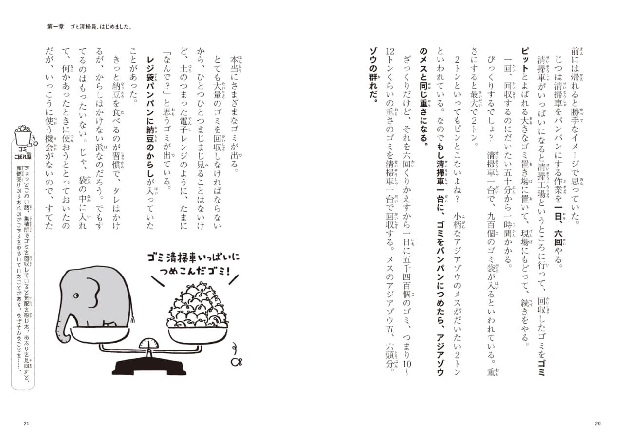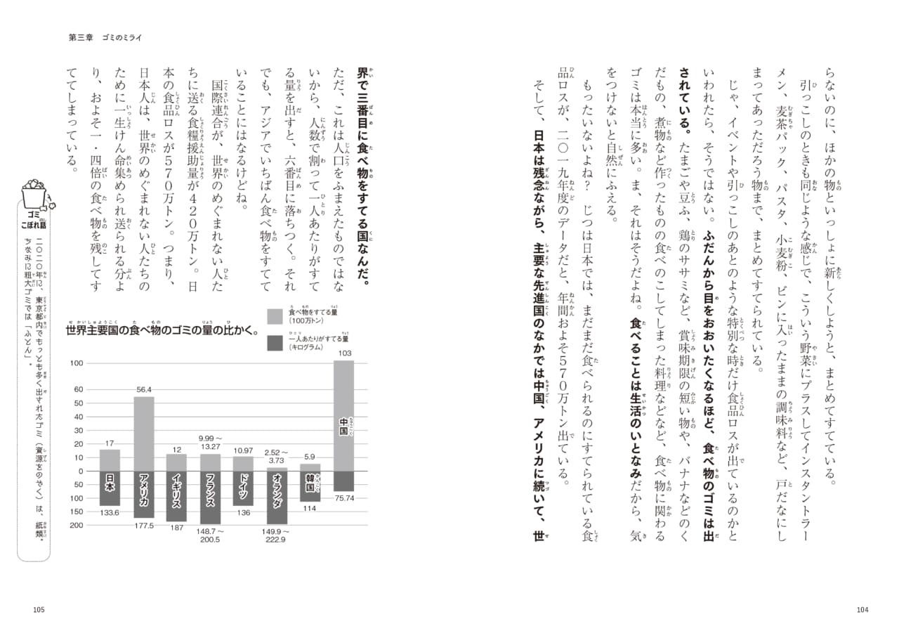 本書では「土の入った電子レンジ」などの謎のゴミの回収エピソードから、「ゴミがくさいのは水分をふくんでいるから」「日本の最終処分場の寿命はあと20年ほど」など、ゴミに関する雑学やその問題、そして想像することの大切さを知る事ができる。