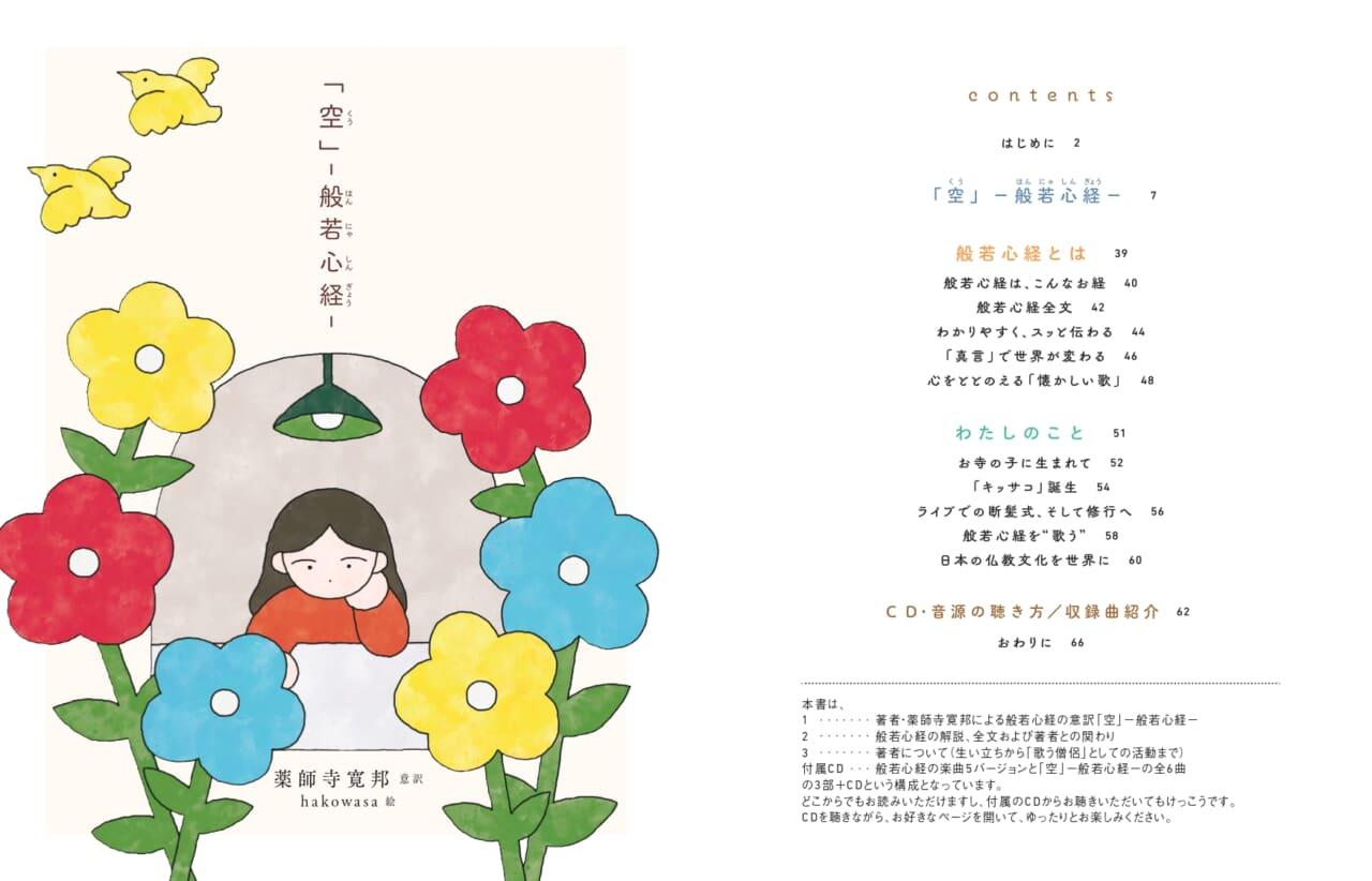 本には、薬師寺さんによる般若心経の現代語意訳「空(くう)」を掲載。音楽家である薬師寺さんの本領が発揮された意訳は、難しい学問っぽさがない、まるでJ-POPの歌詞のようにシンプルで普通の言葉が使われており、これぞ“令和版の超訳「般若心経」”という斬新な文章になっています。