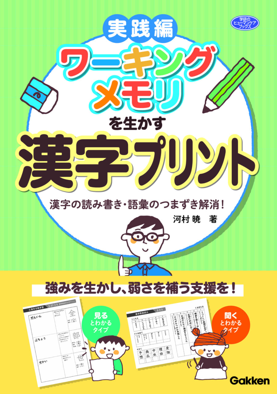 漢字を何回も読んでも読み方を忘れる、繰り返し書くだけでは漢字が書けるようにならないなど、漢字の読み書きや語彙が身につきにくいお子さんを、ワーキングメモリのタイプ別に支援できる漢字プリント集です。