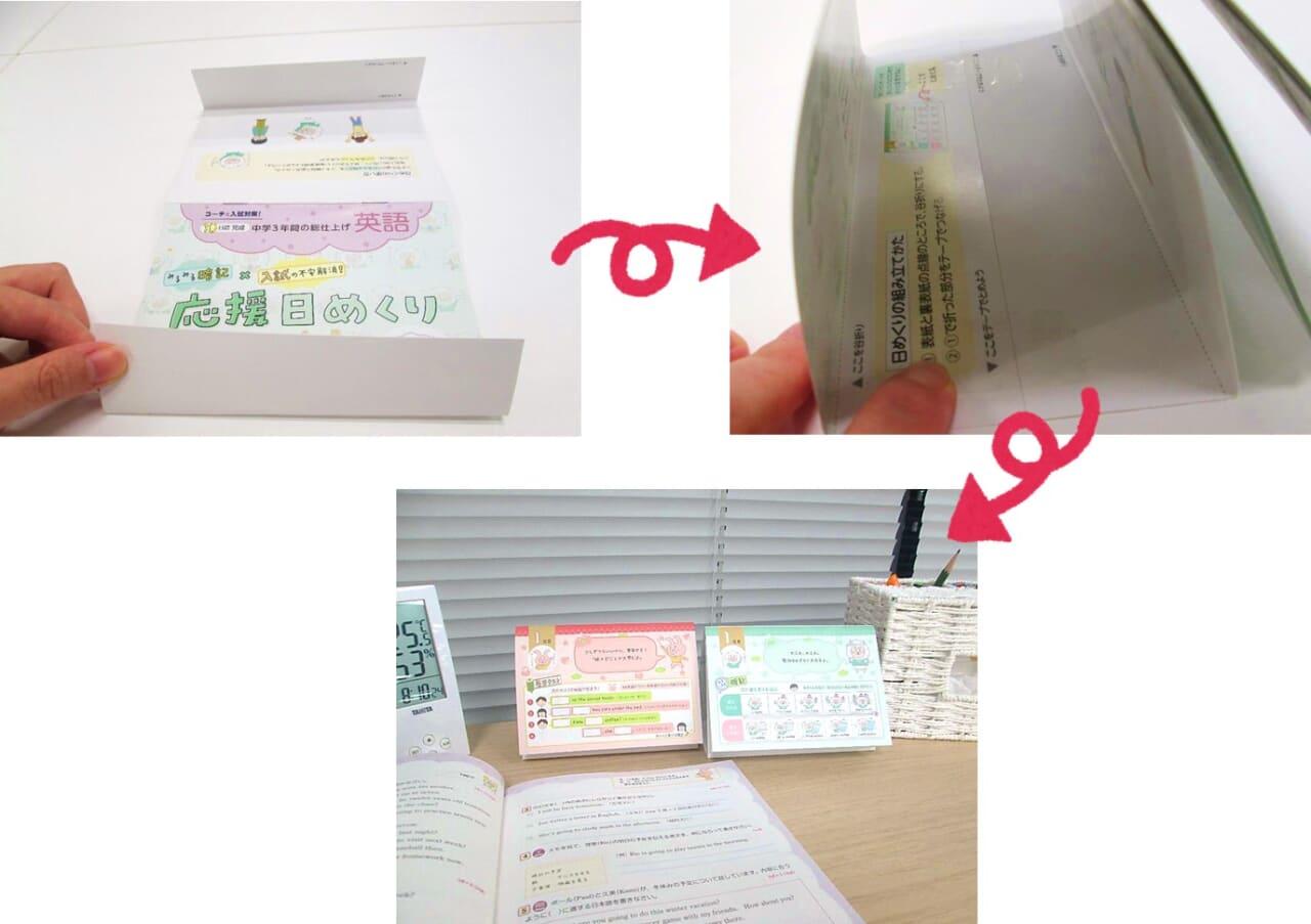 本体から取り外して、折ってテープでつなげば応援日めくりの完成!
