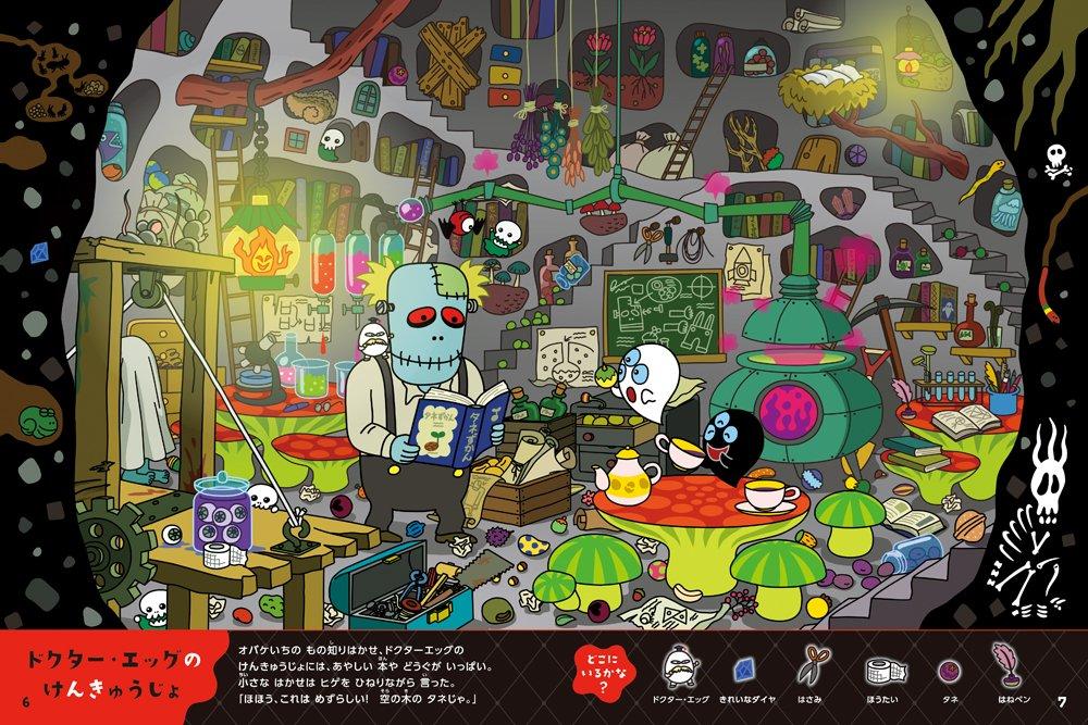 オバケ学校へ行く日、白オバケのシロッチ、黒オバケのクロッチが朝ごはんを作っていると、卵に足が生えて逃げ出した…! 謎の卵をめぐってかわいいオバケたちがオバケの島を大冒険。