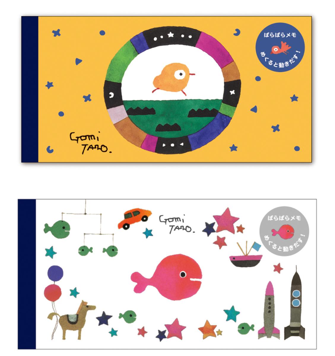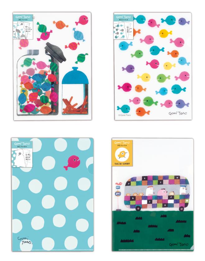今回は「ひよこは にげます」(福音館刊 2021年10月発売)のひよこも仲間入りし、「きんぎょ」と「ひよこ」で暑い夏を涼し気にしてくれる「透明」五味太郎文具シリーズです。
