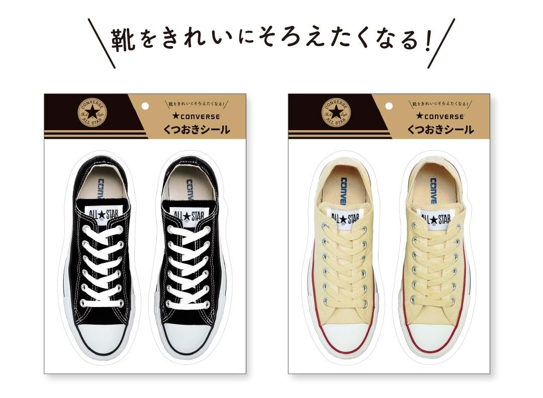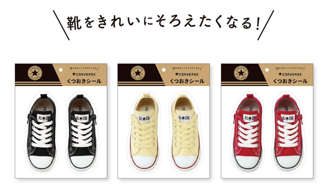 さらに、玄関で脱いだクツをきちんと揃えたくなる「くつおきシール」のコンバースバージョンも同時発売です。