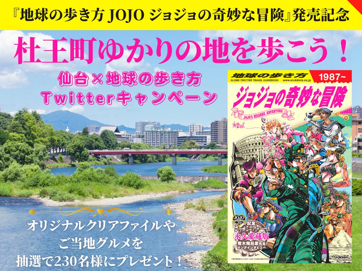 第4部『ダイヤモンドは砕けない』、第8部『ジョジョリオン』の舞台となった杜王町のモデル仙台。荒木飛呂彦先生の出身地でもあり、ファンなら一度は訪れたい町です。『地球の歩き方 JOJO ジョジョの奇妙な冒険』で紹介している仙台各地の『ジョジョ』ゆかりのスポットで、本書の表紙を撮影し、ハッシュタグを付けて期間内にTwitterに投稿してください。抽選で230名様にグレートな賞品をプレゼントいたします!