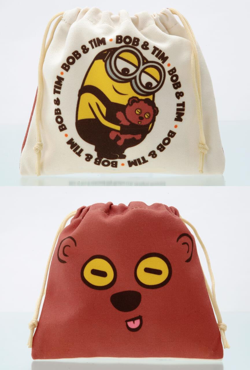 - 巾着はティムを抱いたボブ柄と、ティムの顔の両面デザイン。サイズ:約150×150mm ⓒ Universal City Studios LLC. All Rights Reserved.