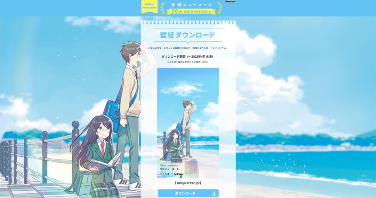 株式会社 学研ホールディングス(東京・品川/代表取締役社長:宮原博昭)のグループ会社、株式会社 学研プラス(東京・品川/代表取締役社長兼COO:南條達也)は、2022年7月16日(土)より、「『ニューコース』50周年記念キャンペーン」を実施。キャンペーン中は、現行版の『ニューコース』のカバーイラストをスマートフォンの壁紙として無料でダウンロードできる。期間は2023年4月末まで。