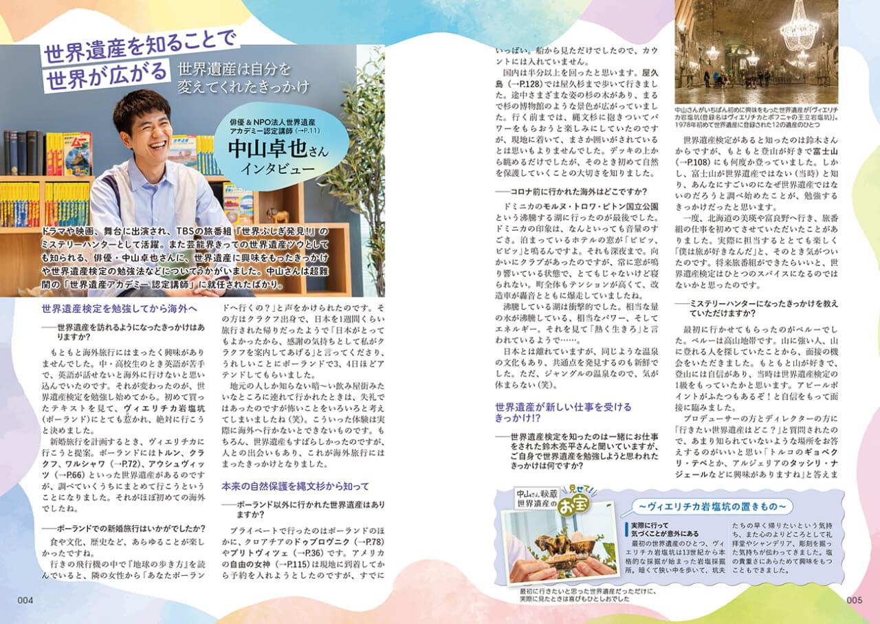 NPO法人 世界遺産アカデミー認定講師で、テレビ番組「世界ふしぎ発見!」のミステリーハンターとしても活躍する俳優の中山卓也さんに、世界遺産を旅したきっかけや秘蔵の世界遺産のお宝、世界遺産検定の勉強法などについてお伺いしました。