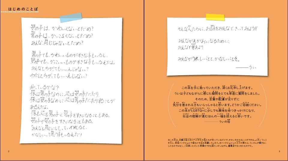 ――こどもの自分だからこそ、たくさんのこどもたちにつたえられることが、あるかもしれない。そんなういさんの思いがたくさんつまった絵本は、LGBTQ+や多様性について考えるきっかけの1冊におすすめです。