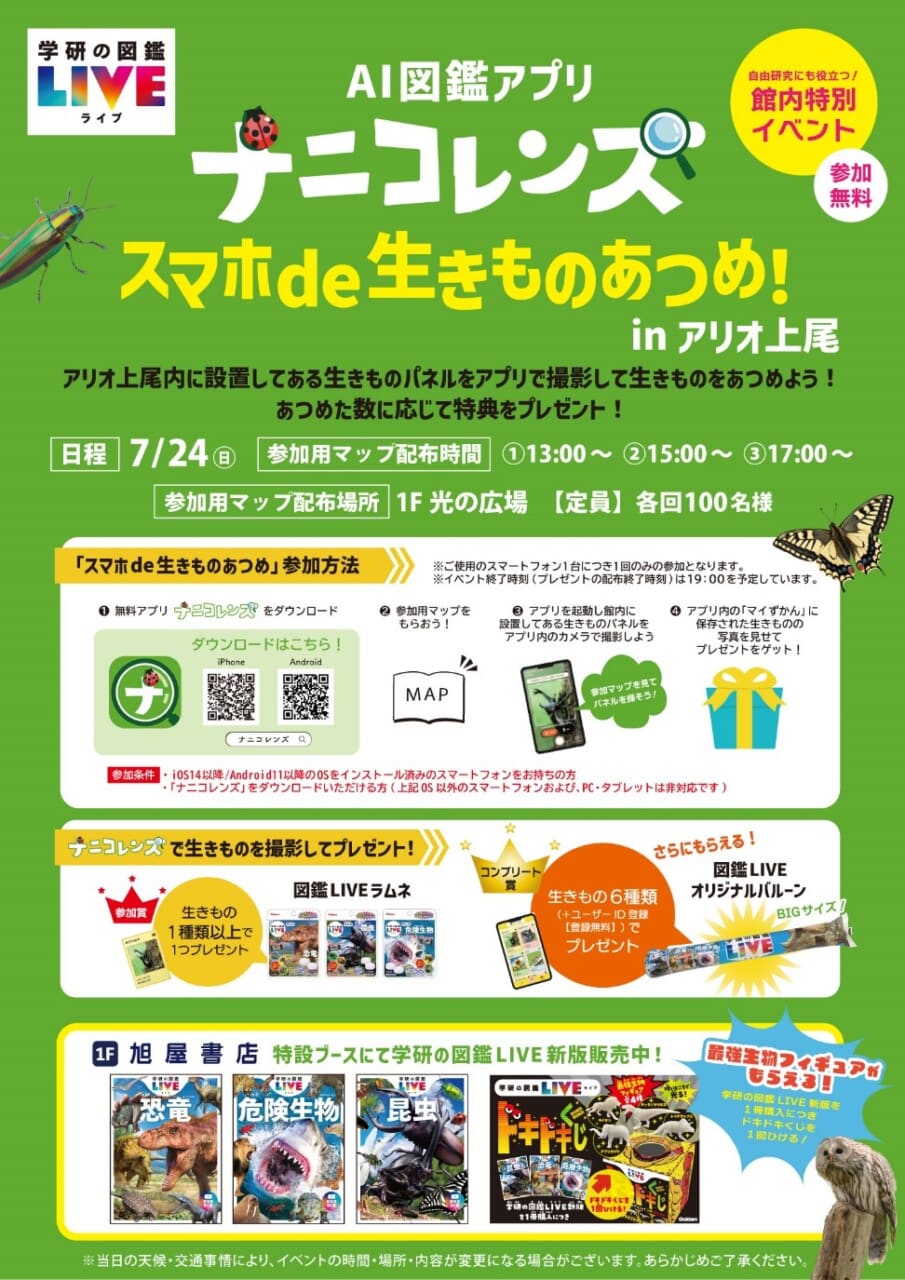 夏休みの始まりに合わせて、学研のAI図鑑アプリ『ナニコレンズ』を使ったイベント「スマホde生きものあつめ!」を実施いたします。