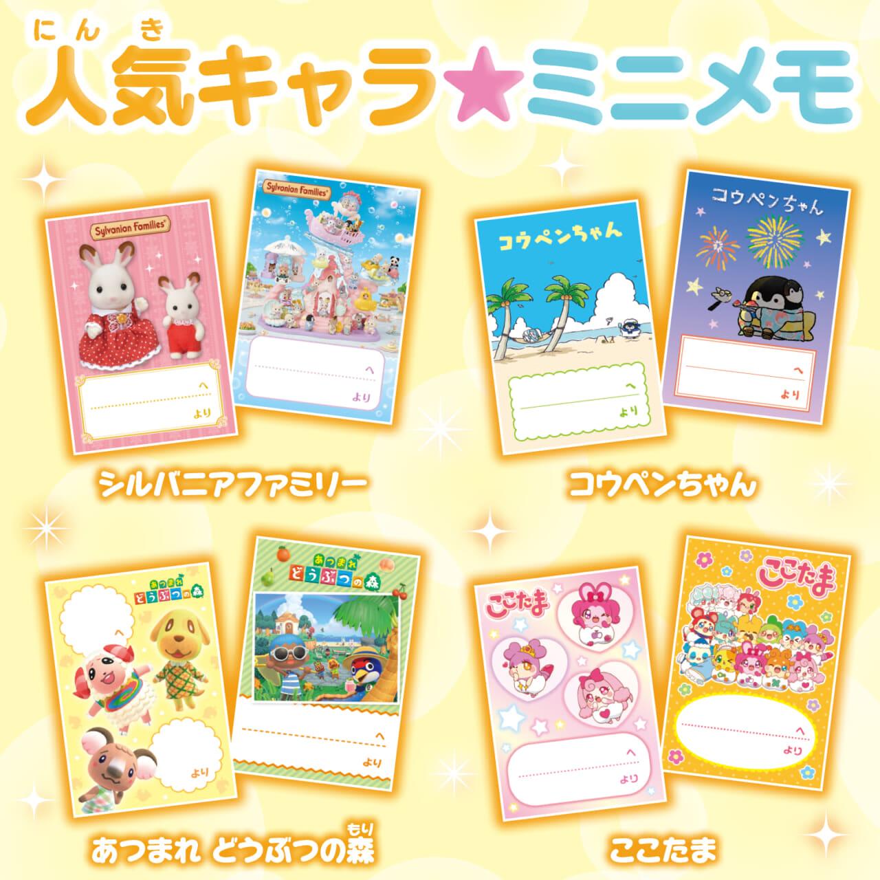 9月号は、おてがみふろくが大充実! シルバニアファミリー、コウペンちゃん、あつまれ どうぶつの森、ここたまと人気のキャラクターが大集合したミニメモは、ちょこっとメッセージを書くのに最適なメモです。是非、大切な人にプレゼントしてくださいね。