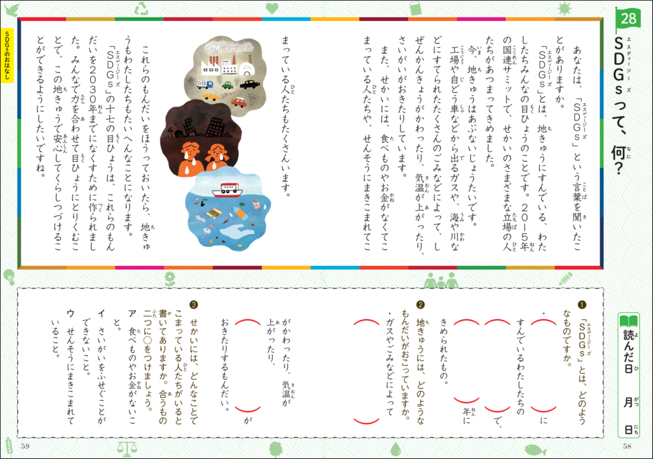 新作の「SDGs」に関するおはなしも4話収録しており、「SDGs」とはなにか、自分たちにできることはなにかを、小学校低学年でもわかるやさしい文章で学ぶことができます。