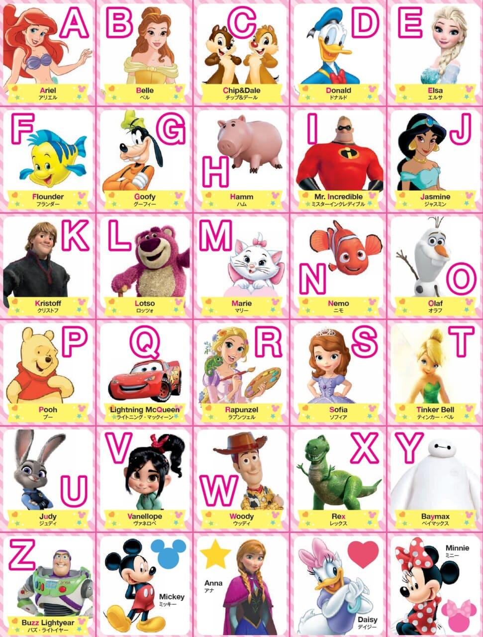 ディズニーキャラクターが勢ぞろいの英語カード。プッシュポップと組み合わせて、ビンゴやカルタで遊べちゃいます♥