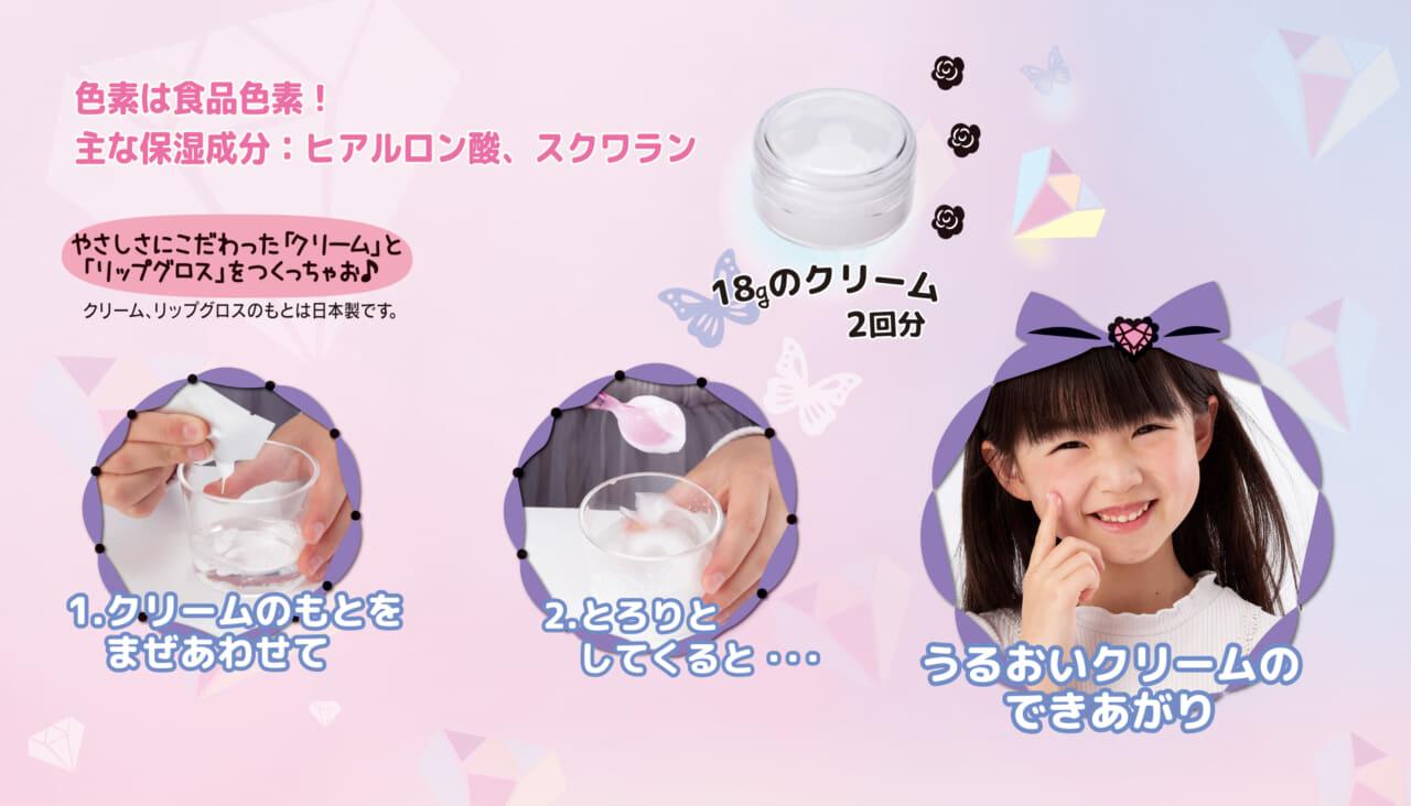 ママみたいにクリームを塗りたいなぁという憧れが叶っちゃう!本格クリームを自分で作って、付属のシールで容器をデコったら、自分だけのプレミアムなクリームの出来上がり♪