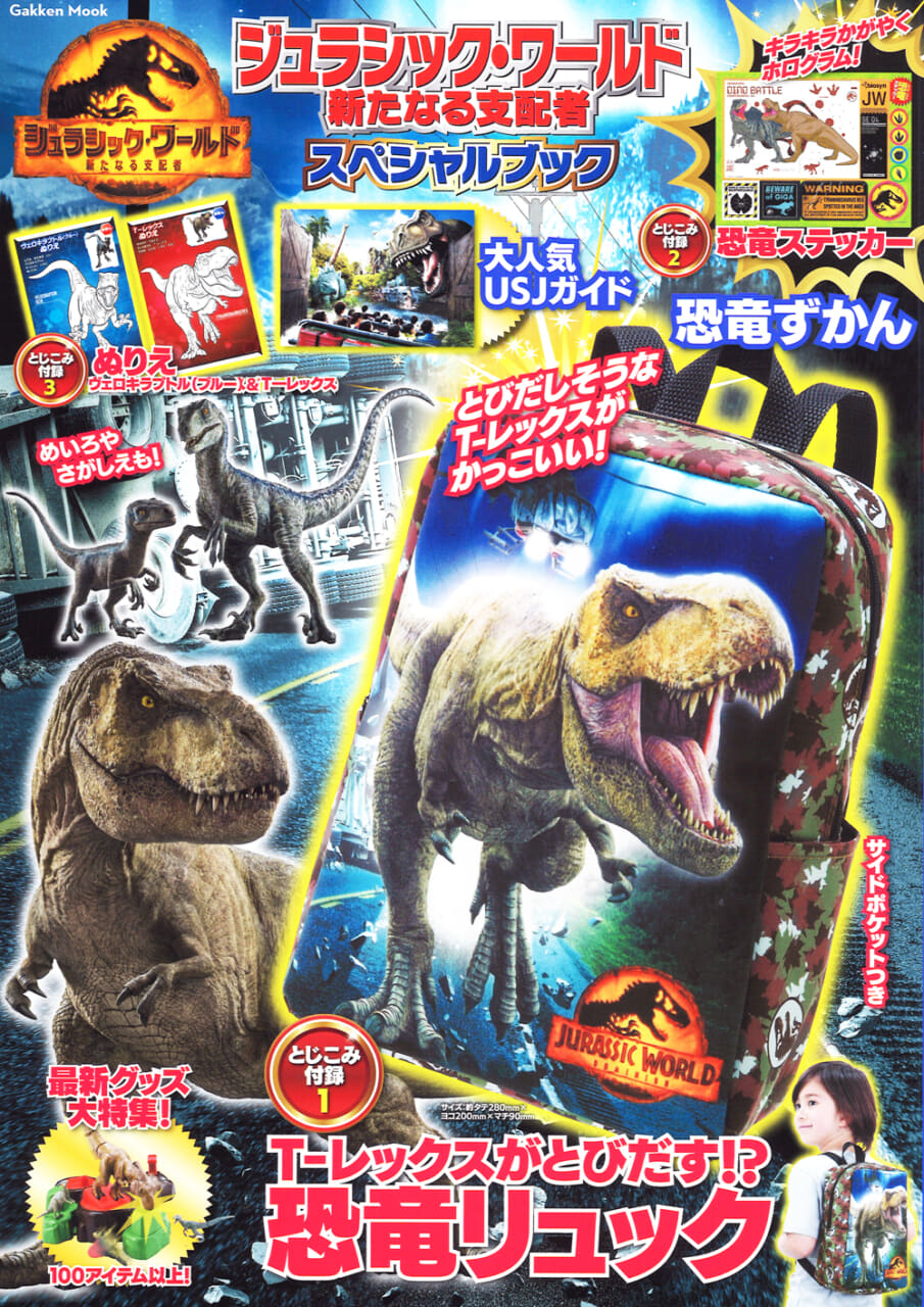 それにあわせ、T-レックスをデザインしたリュックや、ホログラムがかっこいいシールなど豪華付録つきのムックが登場しました。
