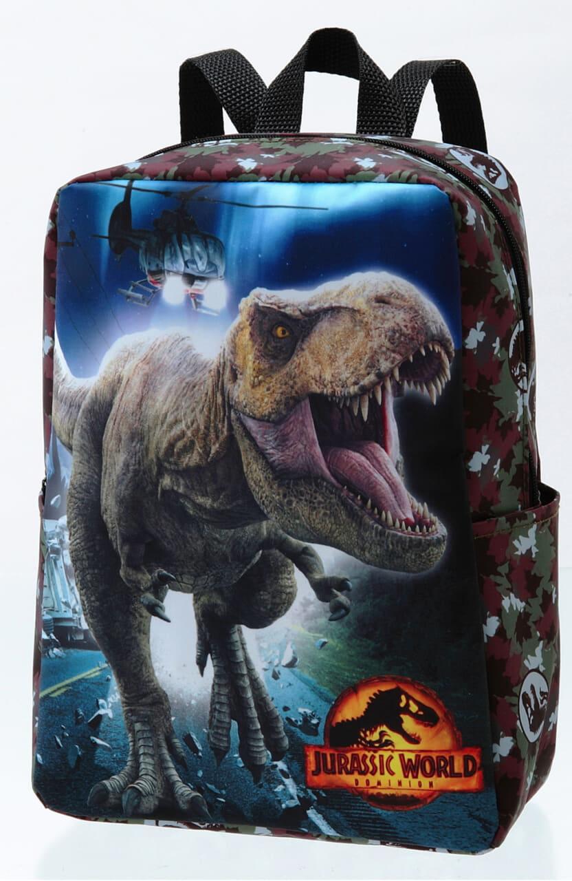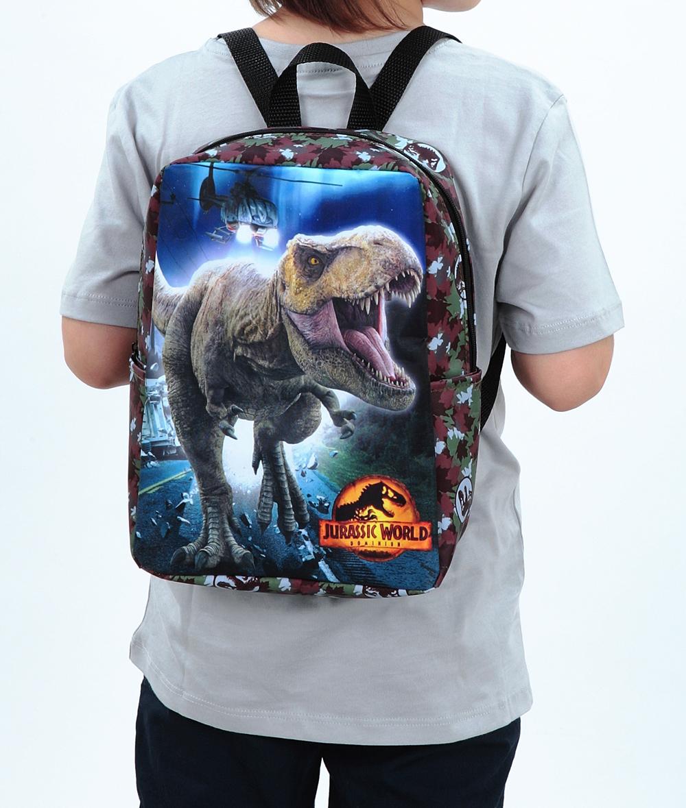 今にも飛び出しそうな大迫力のT-レックスと『ジュラシック・ワールド』のロゴが自慢のリュック! さらにカモフラ柄を組み合わせたかっこいいデザインで、いつでもT-レックスとお出かけ♪(サイズ 約タテ280×ヨコ200×マチ90mm)