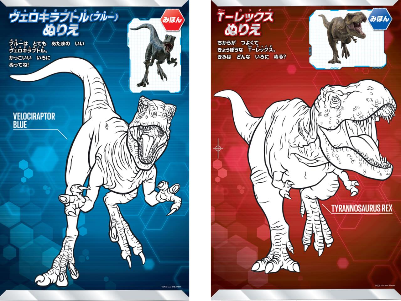 人気の高い恐竜たちがぬりえに! かっこよくぬって仕上げちゃおう。