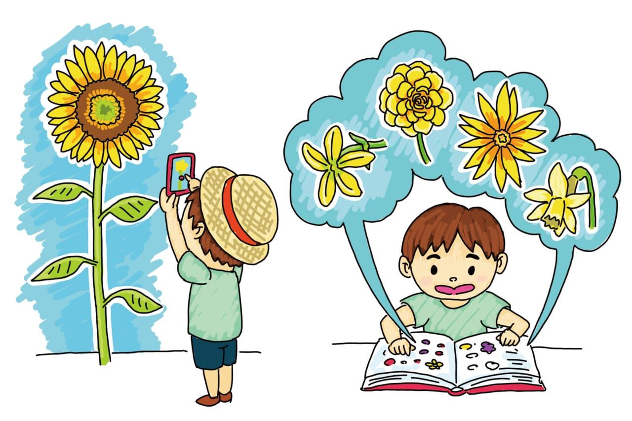 例)他の黄色の花を、植物図鑑の中から4種類探す。