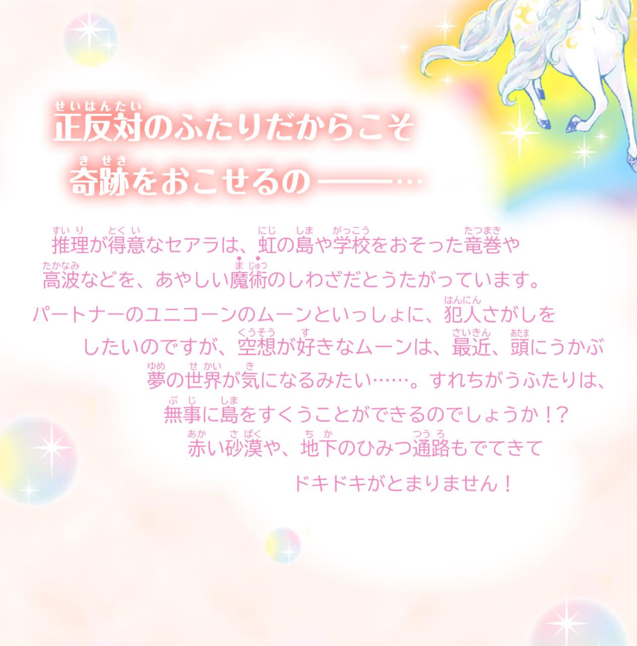 「おとぎの世界にある虹の島、ユニコーン・アイランド。かわいくて勇気ある女の子が 運命のユニコーンと出会ったのです――」