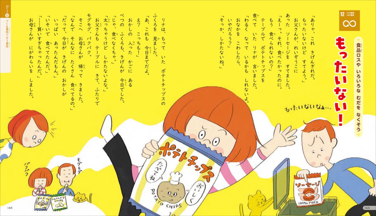 お話のあとには、「もっと知りたい!」にこたえるSDGs17の目標の解説ページと、「やってみよう!」のコーナーもあります。