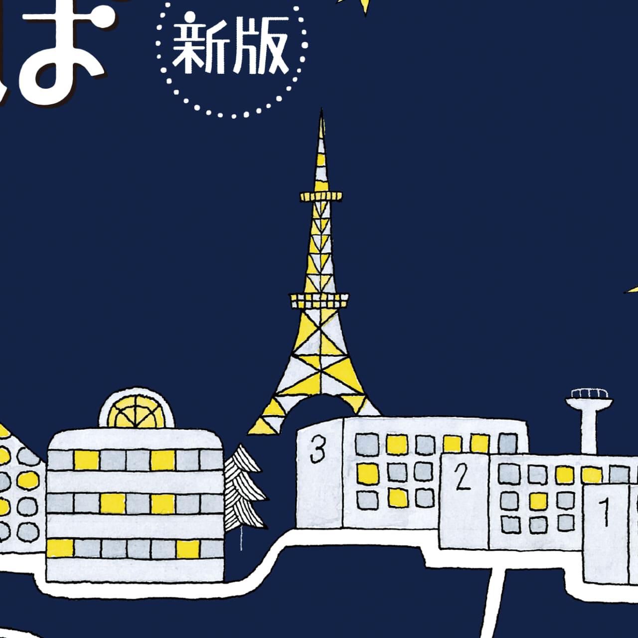 全国版として全国書店で販売中の『おつきさまのおさんぽ 新版』のカバーには、東京タワーを模したタワーが描かれています。スタイリッシュな街並みのイラストに、すっきりと建つタワーはとてもおしゃれ。