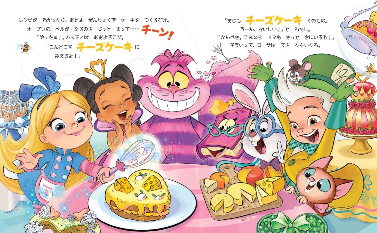 映画『ふしぎの国のアリス』でおなじみのチェシャ猫をはじめ、白うさぎのひ孫のファーギーや、帽子屋のハッティ、ハートの女王など、魅力的なキャラクターたちが登場します。アリスたちが作るお菓子は、蜂が飛び出す「ビーズケーキ」や食べたら凍ってしまう「フリーズケーキ」など、愉快で不思議なものばかり! ふしぎのくにの世界観をたっぷり楽しめる一冊です。
