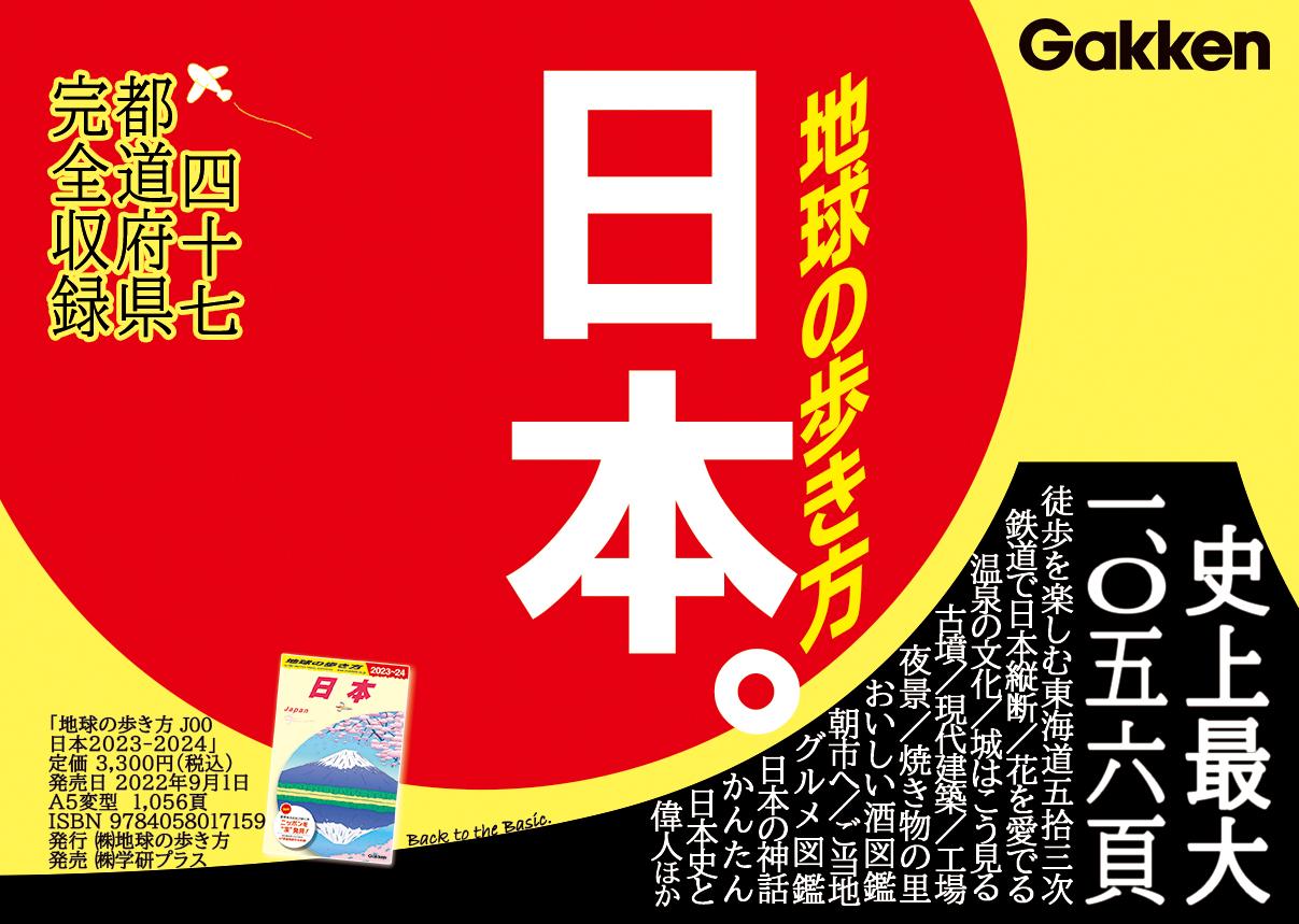 株式会社 学研ホールディングス(東京・品川/代表取締役社長:宮原博昭)のグループ会社、株式会社 地球の歩き方(東京・品川/代表取締役社長:新井邦弘)は、『地球の歩きJ00日本 2023~24』を2022年9月1日(木)に全国書店及びオンライン書店で発売いたしました。