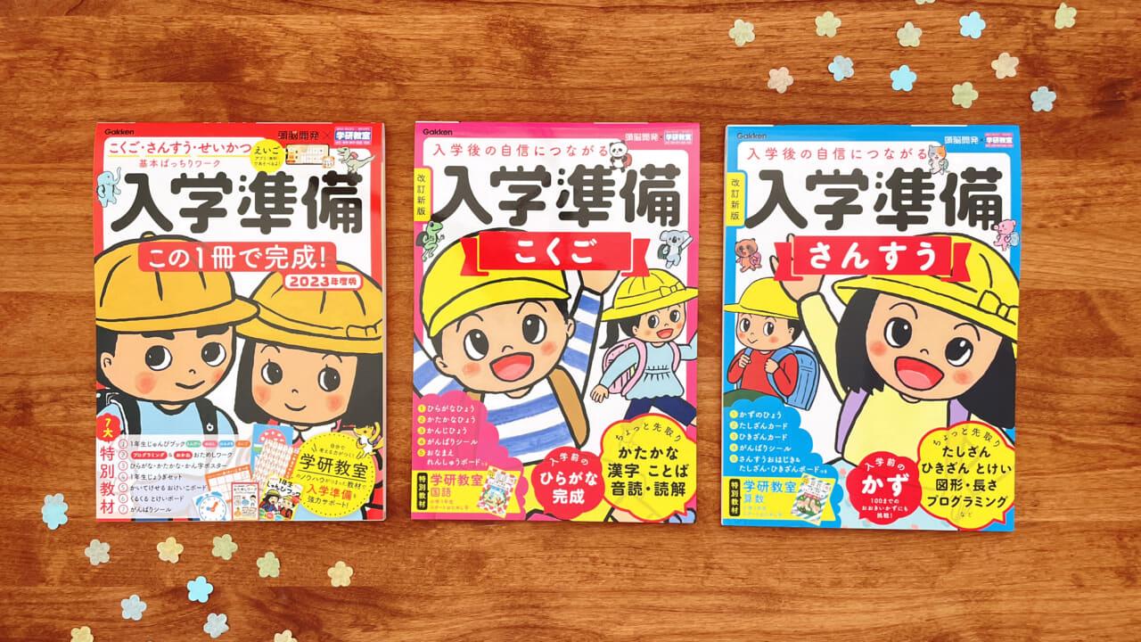 「もじ」「かず」「せいかつ」の基礎が1冊で学べる『入学準備 この1冊で完成!』、入学前に身につけたい基礎の定着と発展問題で先取りができる『入学準備 こくご 改訂新版』『入学準備 さんすう 改訂新版』の3冊で、小学校入学後の自信につながります!