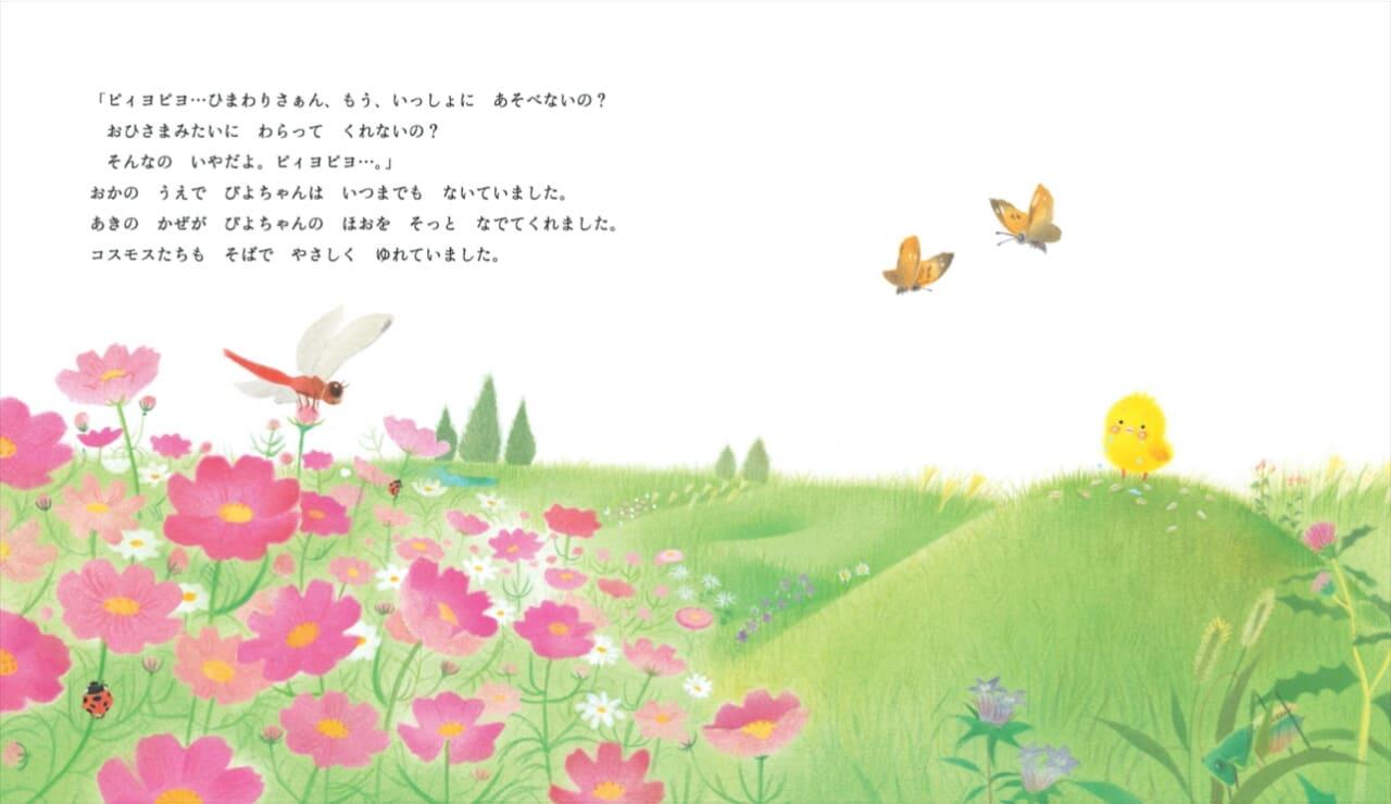 今回展示される原画は『ぴよちゃんとひまわり』を中心に、最新刊の『ぴよちゃんのおかあさんどこ?』や『ぴよちゃんのいもうと』など。絵本の中のどの原画が展示されているか、楽しみにしてください。