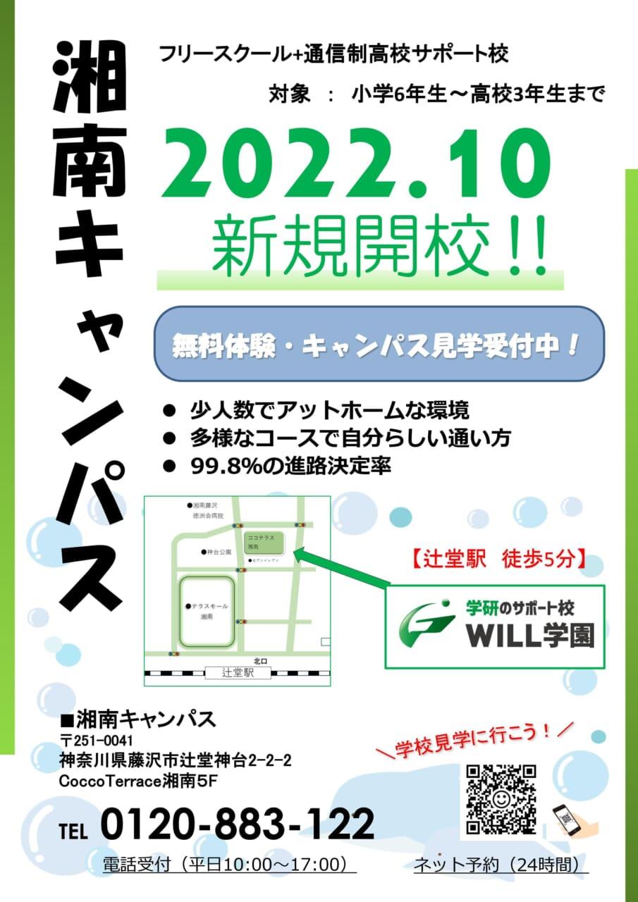 株式会社 学研ホールディングス(東京・品川/代表取締役社長:宮原博昭)のグループ会社、株式会社学研エル・スタッフィング(東京・高田馬場/代表取締役:伊藤 弘雅)は、2022年10月、藤沢市・ココテラス湘南内に「WILL学園湘南キャンパス」をオープンいたします。