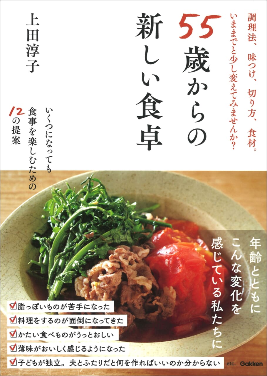 55歳くらいから、女性には体調、環境の両面でさまざまな変化が訪れます。子どもが独立して家を出て、夫とふたりの生活になった。病気ではないけれど、さまざまな不調を感じるようになった──。そんな変化の中で、食事に対する意識や好み、意欲も変わっていきます。でも、いくつになってもおいしく食べ続けたい! ですよね。
