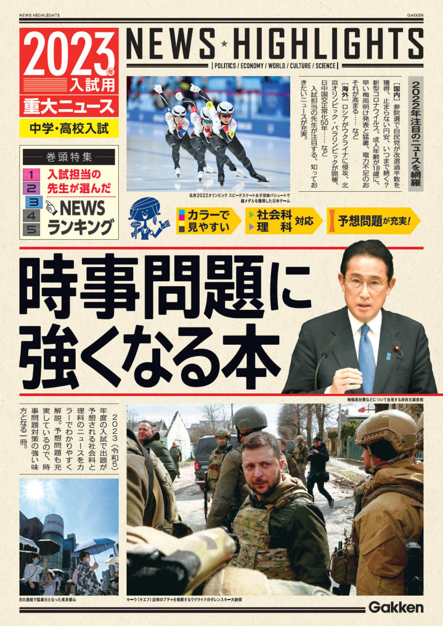株式会社 学研ホールディングス(東京・品川/代表取締役社長:宮原博昭)のグループ会社、株式会社 Gakken(東京・品川/代表取締役社長:五郎丸 徹)は、2022年10月13日(木)に『2023年入試用重大ニュース 時事問題に強くなる本』を発売いたしました。