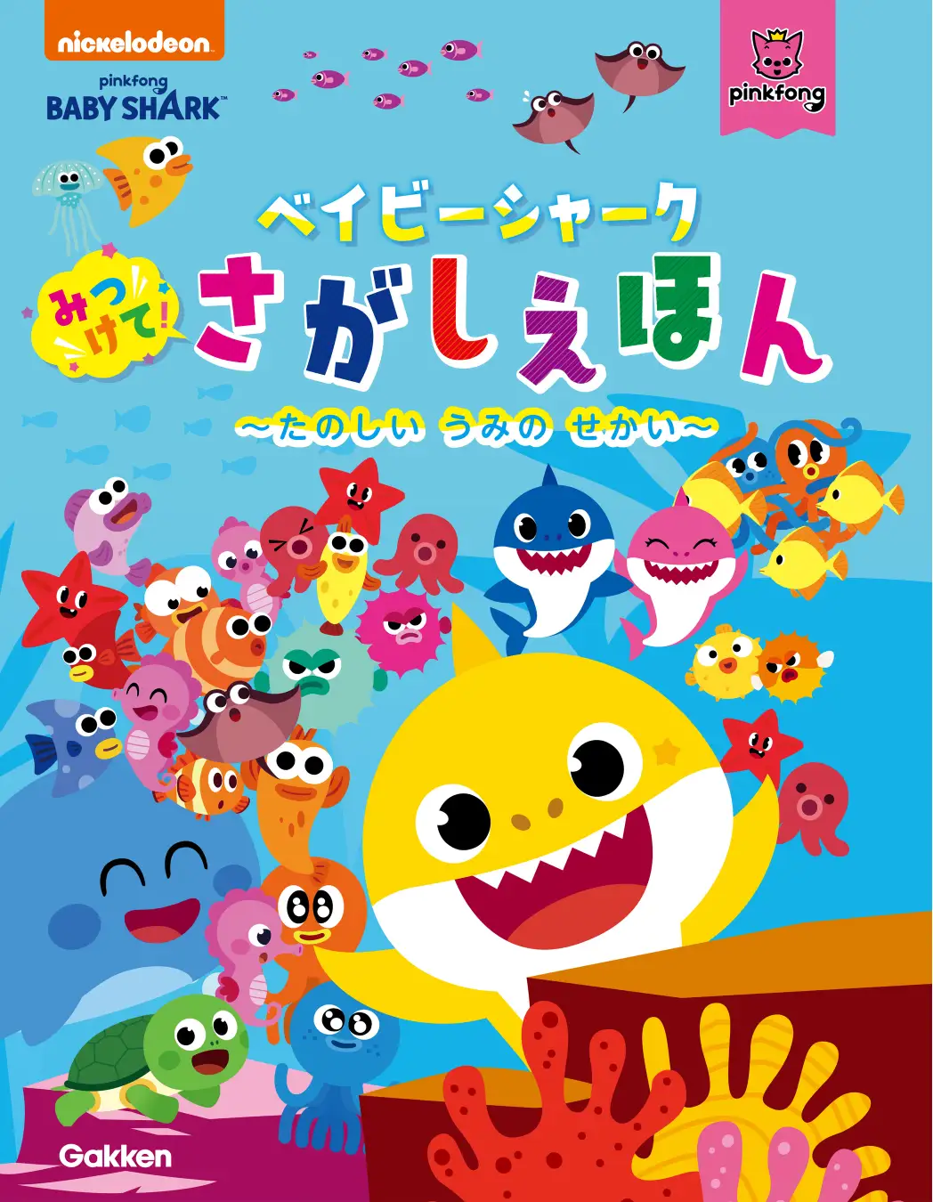 YouTubeで大人気の動画「ベイビーシャーク・ダンス」(https://youtu.be/XqZsoesa55w)のキャラクター、ベイビーシャークのさがしあそび絵本が登場! 海の中で家族や仲間たちと楽しく暮らすベイビーシャークのかわいいシーンが満載! ビーチ、演奏会、海賊ごっこ、学校など、全13シーンの中から、食べ物や楽器、生き物、文房具などさまざまなものをさがして遊べます。さらに、絵本全体の中からさがす「むずかしいもんだい」も掲載。お子さまが楽しみながら、集中力を高められるさがしあそび絵本です。