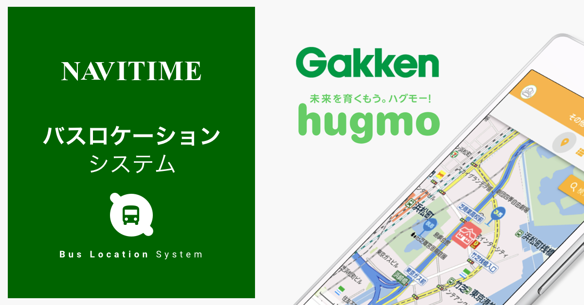 株式会社学研ホールディングス(東京都品川区、代表取締役:宮原博昭)のグループ会社、株式会社Gakken(東京都品川区、代表取締役社長 五郎丸 徹、以下「Gakken」)と、株式会社ナビタイムジャパン(東京都港区、代表取締役社長:大西 啓介、以下「ナビタイムジャパン」)は、2022年4月より保育ICTサービス「hugmo(ハグモー)」内において、新たにバスロケーションシステムと連携し、バス位置情報通知サービス「huglocation(ハグロケーション)」をリニューアルしました。そして2022年10月20日より、バス位置や運行情報に加えて渋滞情報を表示する「渋滞情報」機能を追加しましたので、お知らせいたします。新しくなった「huglocation」をどうぞご利用ください。