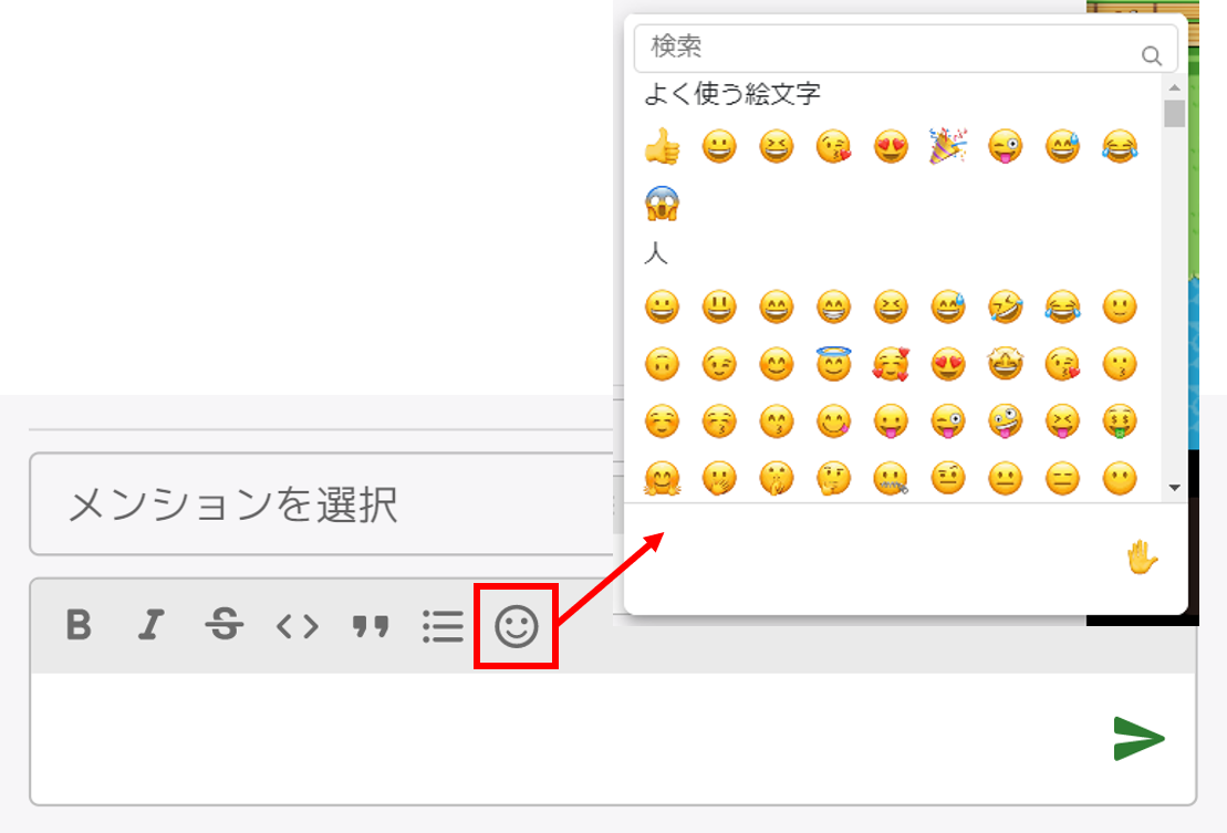 また今回、チャットのテキストフォームに絵文字ボタンが追加され、より絵文字が使いやすくなっております。